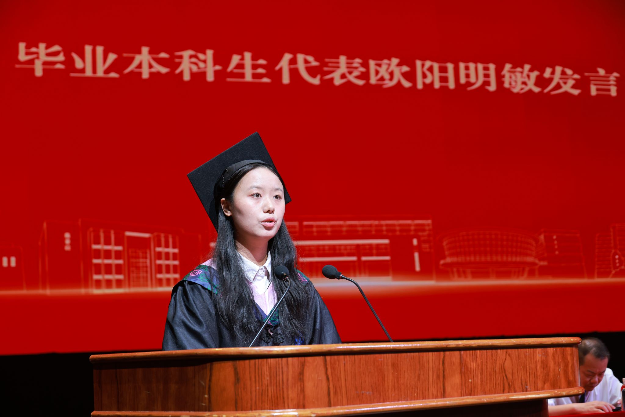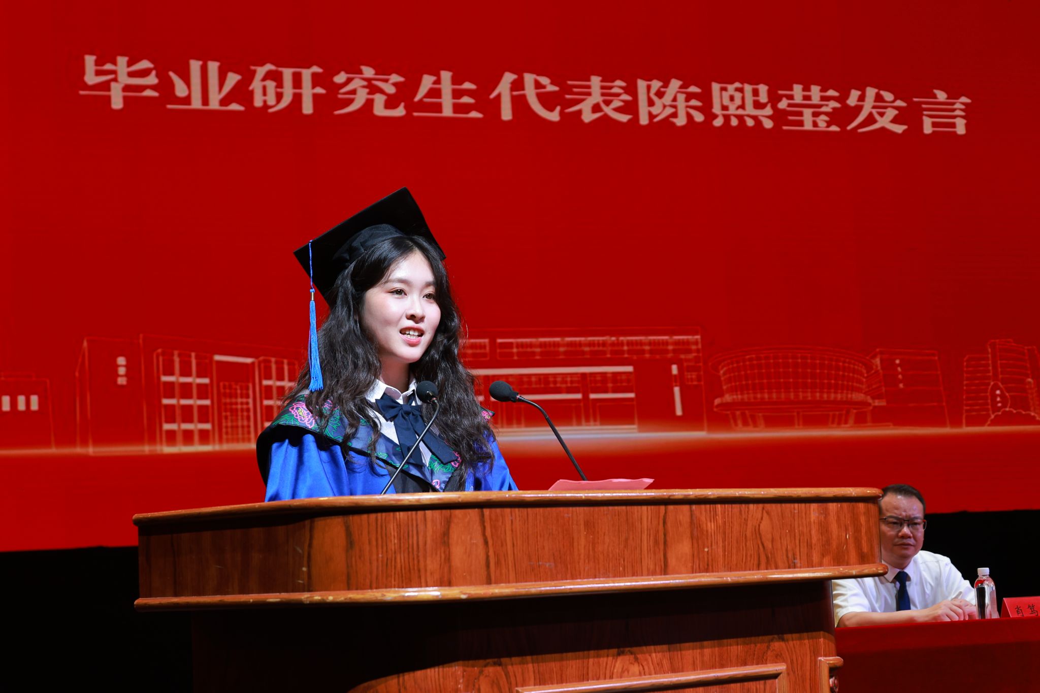 6月10日上午,学校2025年毕业典礼暨学位授予仪式在聂耳剧场举行。校长陈义旺出席并致辞,校党委常委班子成员罗序中、甘雅芬、肖笃森、黄保文、叶云明、陈文红,学校有关职能部门和各教学学院党政负责同志,毕业班辅导员、班主任,教师代表、校友代表、家长代表共同见证2025届同学的毕业时刻。校党委副书记刘民主持典礼。