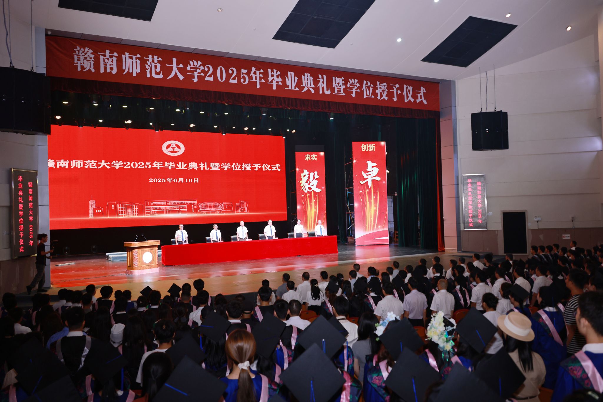 陈义旺代表学校热烈祝贺2025届的同学们顺利毕业。他勉励2025届毕业生,大力弘扬博达毅卓的校训,在强国之路上淬炼赣师人特有的“精气神”。陈义旺指出,博,要构建数字时代的认知坐标系,践行“海星模式”获取知识,开展“第一性原理”思维革命;达,要在不确定中修炼积极的心智,养成独立的人格,学会独立思考,保持乐观向上的心态;毅,要做时间复利的长期主义者,扎扎实实、久久为功;卓,要撕掉标签开拓成功的新赛道,用格局、智慧、行动去加持事业,创新突破,引领潮流。