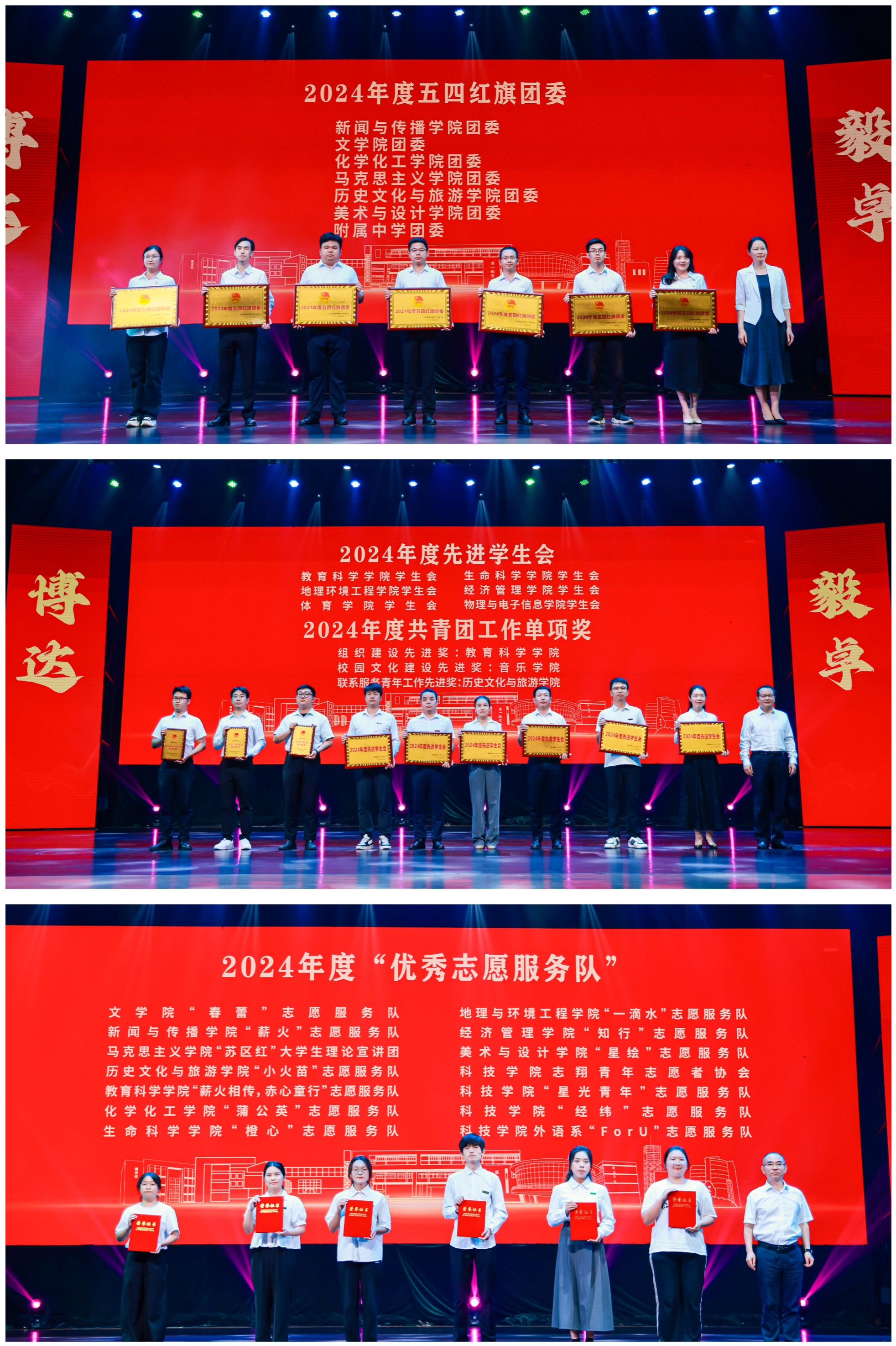 会上,党委常委、副校长罗序中宣读了表彰决定。党委常委班子成员依次为学校2024年度学生工作目标管理考核先进单位、五四红旗团委、先进学生会、共青团工作单项奖、五四红旗团支部标兵,第十四届青年五四奖章、优秀志愿服务队、优秀共青团干部、优秀共青团员、优秀青年志愿者颁奖,大会在《赣南师范大学校歌》激昂乐曲中圆满结束。