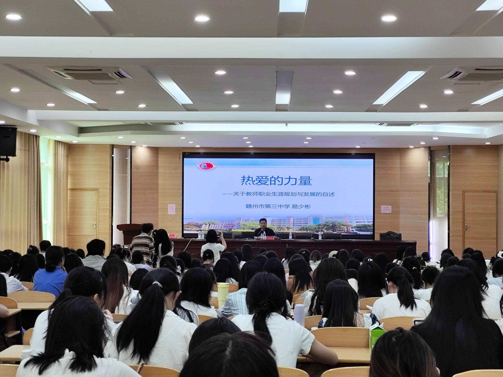 5月16日,“全国模范教师”、文学院汉语言文学专业2008届校友易少彬做客学校第四期“大先生”讲堂,作题为《热爱的力量——关于教师职业生涯规划与发展的自述》的专题报告,300余名师范生参加。