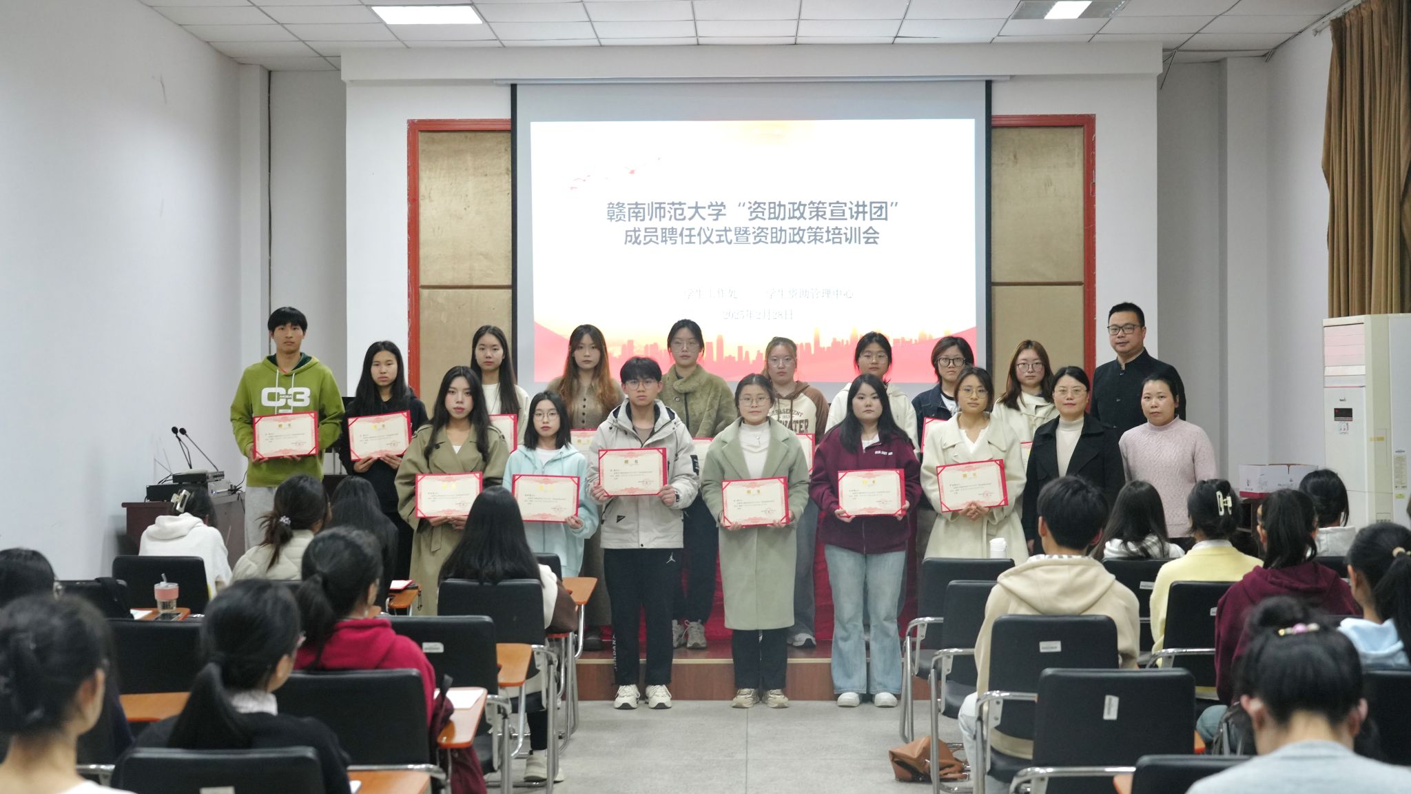 聘任仪式上,为新聘任的大学生资助政策宣讲团成员发放聘书,音乐学院舞蹈学2301班徐淑君作代表发言。