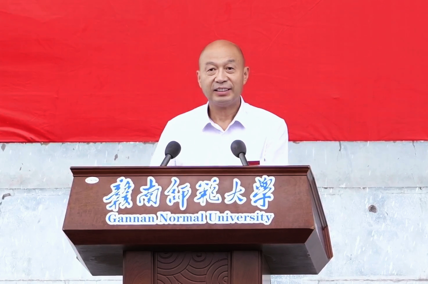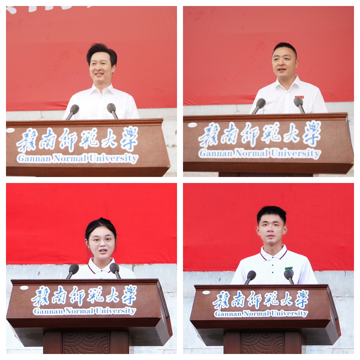 典礼上,出席校领导为新生代表颁发赣南师范大学校徽,全体新生齐唱《赣南师范大学校歌》。我校音乐与舞蹈学院2017届毕业生、国家一级演员,江西省歌舞剧院院长杜欢作为校友代表发言,智能制造与未来能源学院教师李宝磊、历史文化与旅游学院旅游管理(金牌讲解)2201班俞洲语、物理与电子信息学院物理学(公费师范)2501班陈炳玮作为师生代表先后发言。