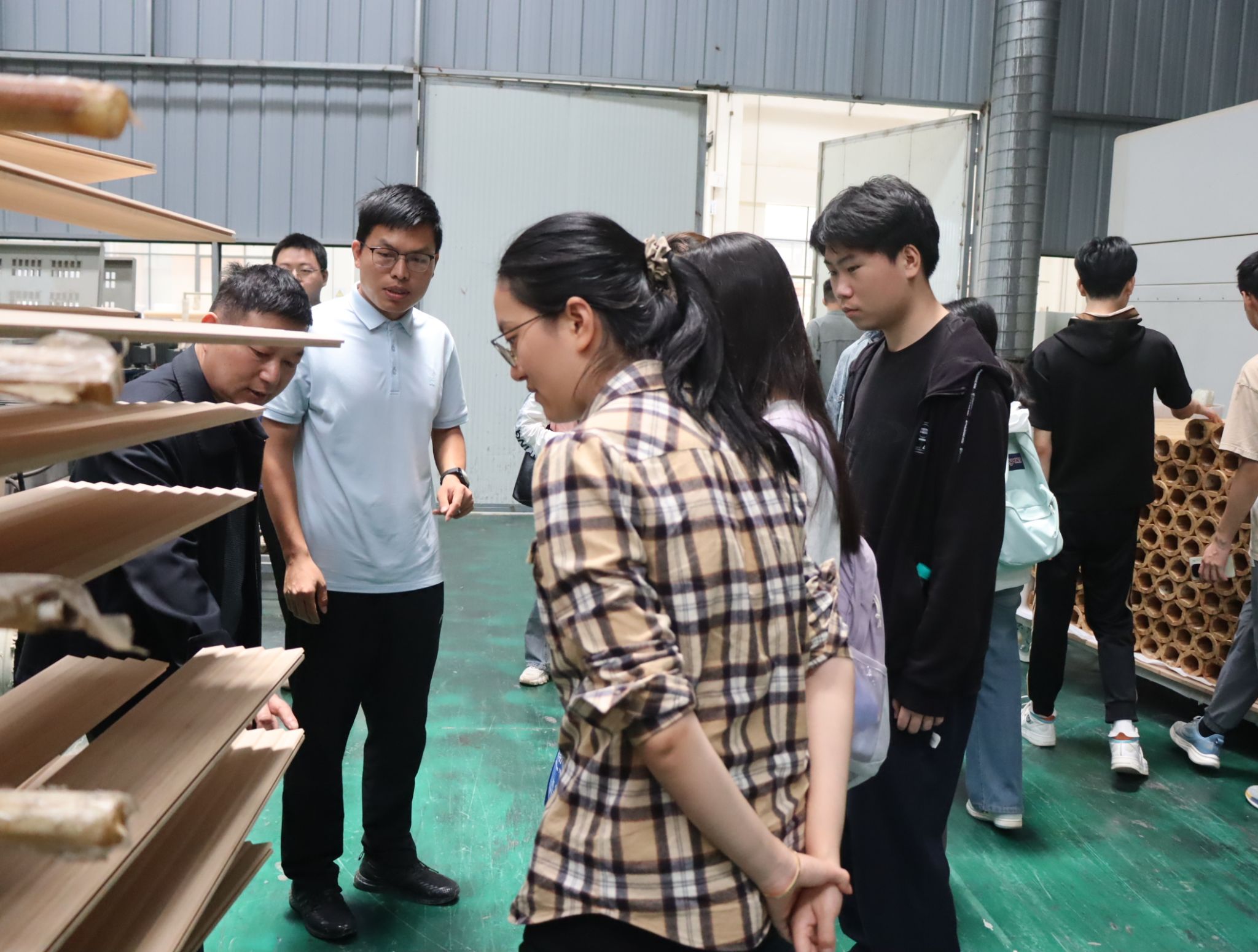 崇义县林业推广中心主任罗石林现场讲授县域竹产业发展路径,剖析集约经营对竹林增产增收的关键作用。赣州森泰竹木研发总监邬康文带领师生深入生产线,直观对比竹材与塑料的环保性能优势,并鼓励学生投身竹基新材料研发,为苏区振兴注入“绿色动能”。