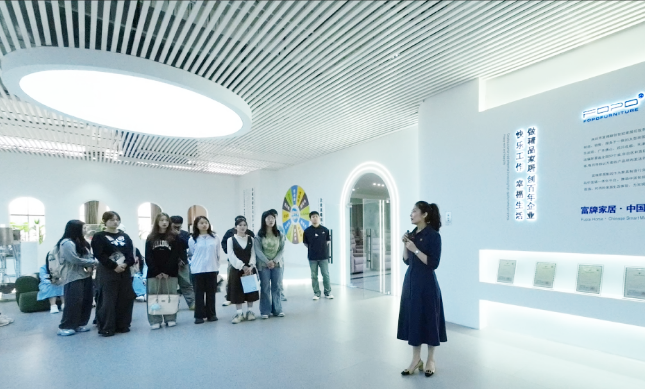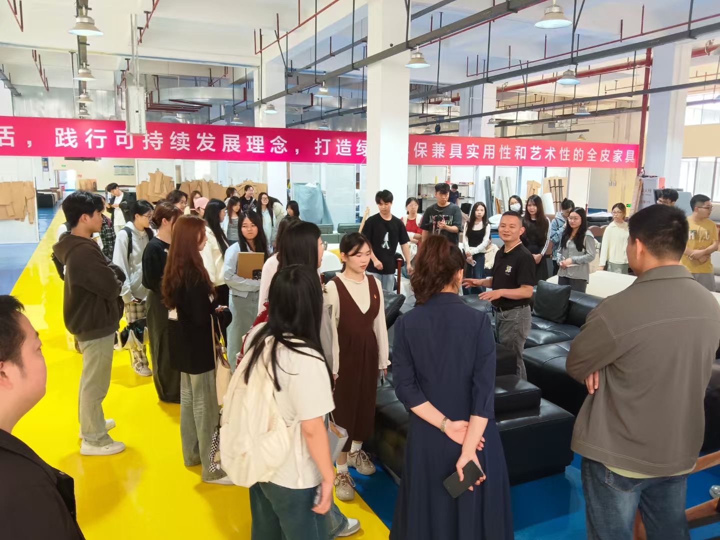 南康富牌智能家居公司负责人作为产业导师,带领师生深入生产一线参观学习,详细讲解家具制作流程,分享了在市场竞争中总结出的宝贵经验。