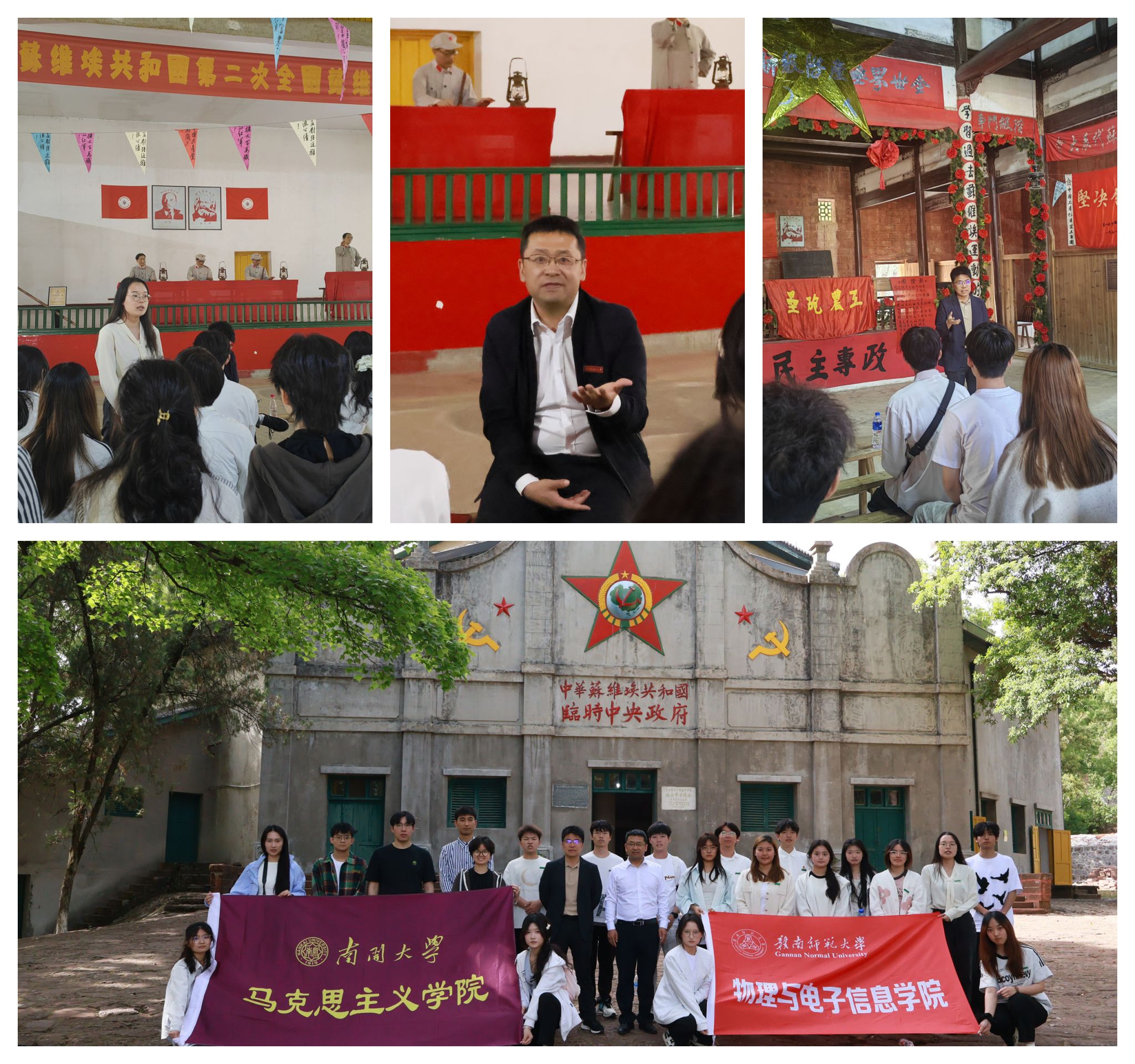 近日,物理与电子信息学院红色班级“博生班”联合南开大学马克思主义学院红色记忆宣讲团,围绕“追寻红色足迹情系苏区振兴”主题,深入瑞金市开展红色微课联讲·红色走读联学:高校协同赋能“苏区振兴”思政大课活动。物理与电子信息学院负责同志,“博生班”学员代表以及南开大学马克思主义学院红色记忆宣讲团成员参加活动。